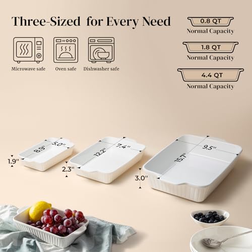 Perfect for Gift Giving: With a sleek, modern design and elegant white finish, these ceramic bakeware dishes elevate any kitchen. Ideal for casseroles, lasagnas, roasts, and more. Makes a great gift as a casserole dish set for weddings, housewarmings, birthdays, and gatherings