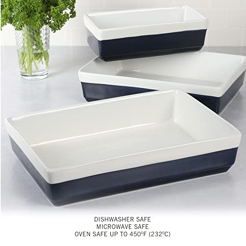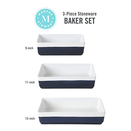 MARTHA STEWART 3 Piece Oven to Table Stoneware Bakeware, Baking Dish & Casserole Set Cobalt Blue