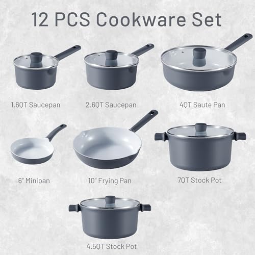 CAROTE Ceramic Cookware Set 12 Piece, Healthy & PFOA/PFAS Free, Nonstick Pots and Pans Set, Induction-Compatible, Navy Blue