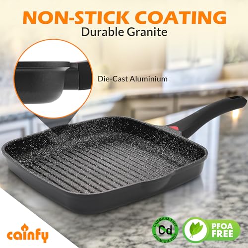 Versatile Cooking: Discover the ultimate flexibility with our grill pans, ideal for transforming any stovetop into a grilling paradise. This frying pan features a durable granite non-stick coating that is PFOA, lead, and cadmium free for superior release and easy cleanup.