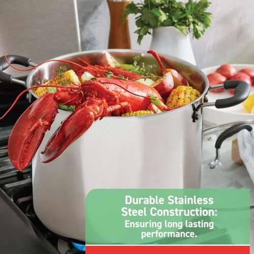 T-fal Specialty Stainless Steel Stockpot 12 Quart Oven Safe 350F Pots and Pans, Cookware Silver
