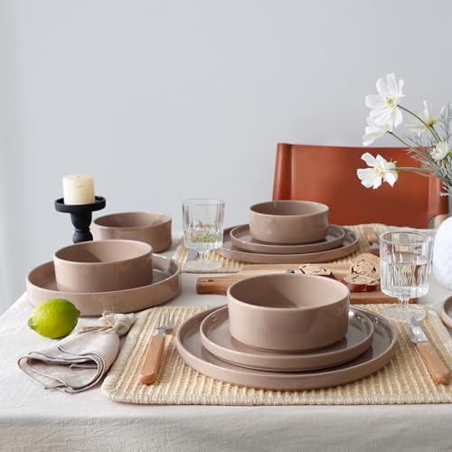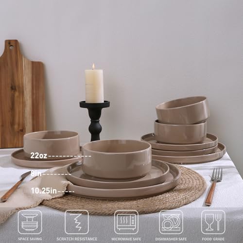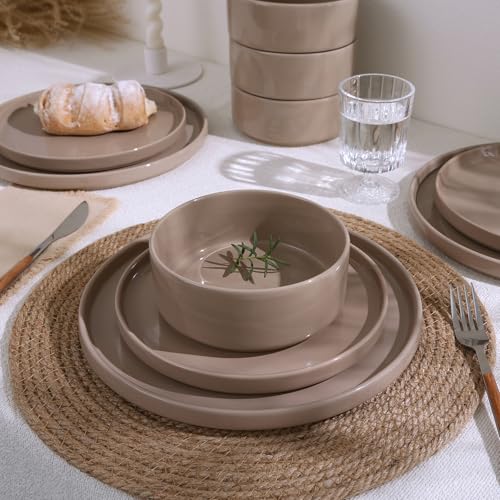Famiware Nebula Plates and Bowls Set, 12 Pieces Dinnerware Sets, Dishes Set for 4, Cinnamon Brown