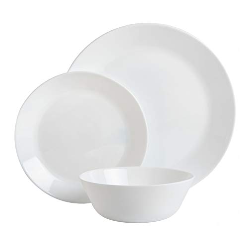 Gibson Home Ultra 18 Piece Break and Chip Resistant Dinnerware Plates and Bowls Set, Round: Service for 6, Opal Glass, White
