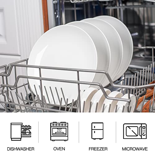 DELLING 10 inch White Dinner Plates Set, Porcelain Dessert/Salad Plate, Serving Dishes, Dinnerware Sets, Scratch Resistant, Microwave, Oven, and Dishwasher Safe – Set of 4