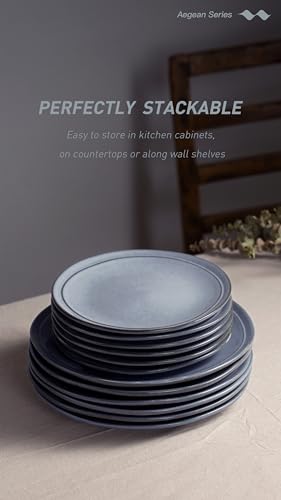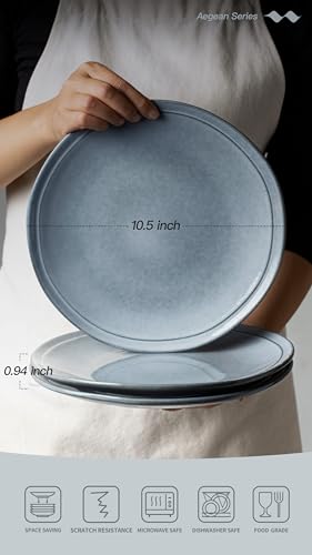 Famiware Aegean Dinner Plates Set for 6, 10.5-Inch Scratch Resistant Stoneware Dinnerware Dish Set – Microwave and Dishwasher Safe, Reactive Glaze, Blue Grey