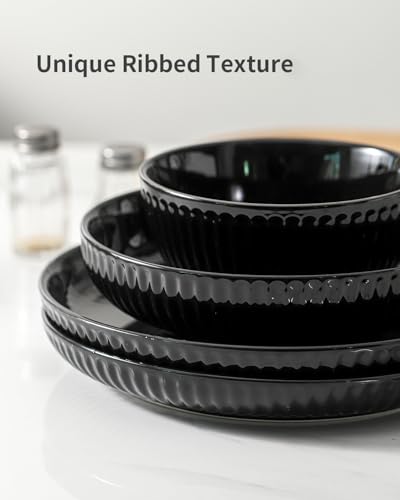 Stylish Round Design: Hasense smooth round design of black dinner plate with a unique ribbed texture adds a sense of modernity and high-end, while the simple yet not simplistic shape adds a sense of fashion to the table setting while also providing a sense of comfort, making every meal more enjoyable