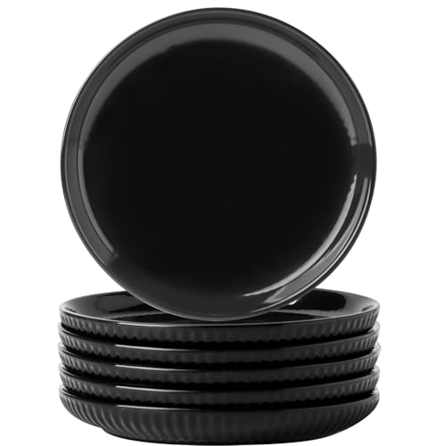 Hasense Black Dinner Plate Set of 6, 10 Inch Ceramic Plates for Kitchen, Large Salad Plates for Lunch, Dinnerware Dish for Restaurant, Home, Microwave Safe Dish for Mother’s Day & Housewarming Gift