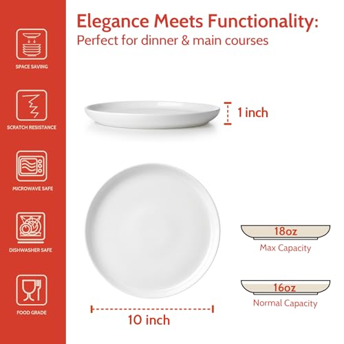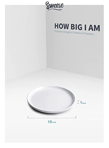 Sweese Porcelain White Dinner Plates Set of 6, 10 Inch Salad Serving Modern Round Dishes – Dishwasher, Microwave, Oven Safe, Scratch Resistant, Smooth Glaze