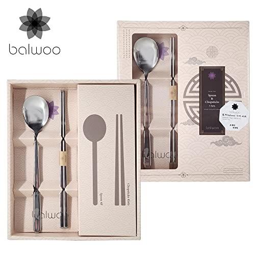 balwoo Spoon and Chopsticks 5 Sets. Korean Flatware Set. BALWOO Brand Case Package