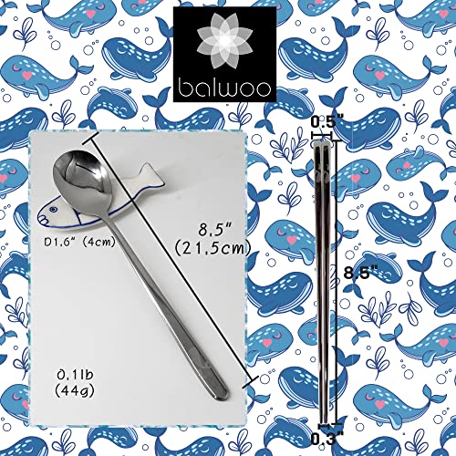 [5 Sets][Made in Korea] Sticky Korean Style Rice Spoon Chopsticks Set 430 Stainless Steel Soup Spoon Ramen Noodle Chopsticks Flatware (Whale)