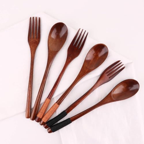 1 set of wooden tableware, including 1 fork, 1 spoon, 1 pair of chopsticks. Perfect for camping, travel, work, hiking, picnics, and any other outdoor activities. It is also perfect for offices, kitchens, restaurants, hotels, friends dining, and more.