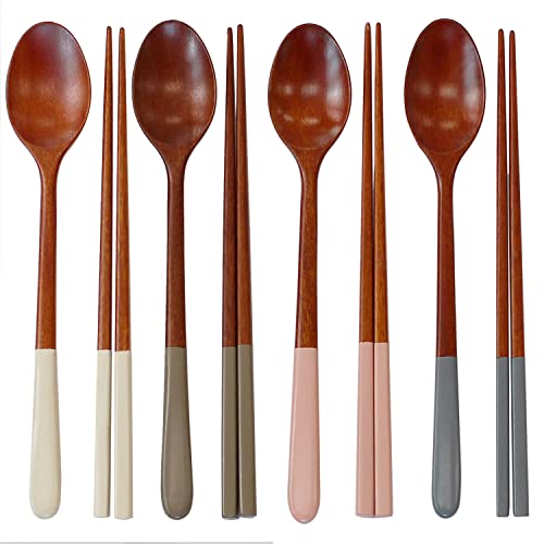 MANMUL sangjeom Korea Style Spoon and Chopsticks Set, 4 set lacquer Wooden Chopsticks Spoon (beige+pink+ivory+gray)