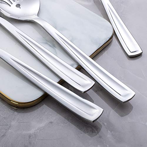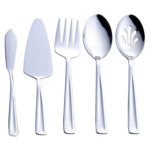 Hostess Serving Utensil Set, GoGeiLi 5-Piece Stainless Steel Flatware Silverware Serving Set, Include Pie Server, Serving Spoon, Slotted Serving Spoon, Serving Fork and Spreader Knife