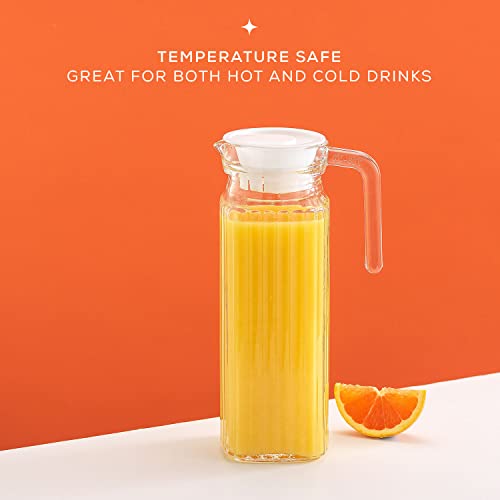 40oz Glass Pitcher with Lid (2 Lids) – Beverage Serveware, Storage Container and Carafe for Hot Liquids or Cold Drinks. Glass Water Pitcher, Bedside Carafe, Sun Tea Jar, Juice Pitcher