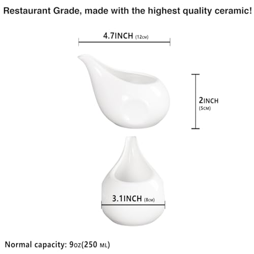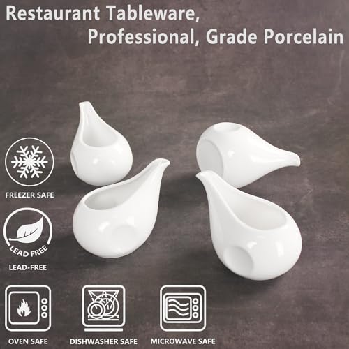Gravy Boat Small Creamer Pitcher Set, Coffee Milk Gravy Boat, Fine Porcelain With Lip Spout, For Gravy, Warming Sauces, Salad Dressings, Milk, More, Microwave & Freezer Safe (Set of 4)