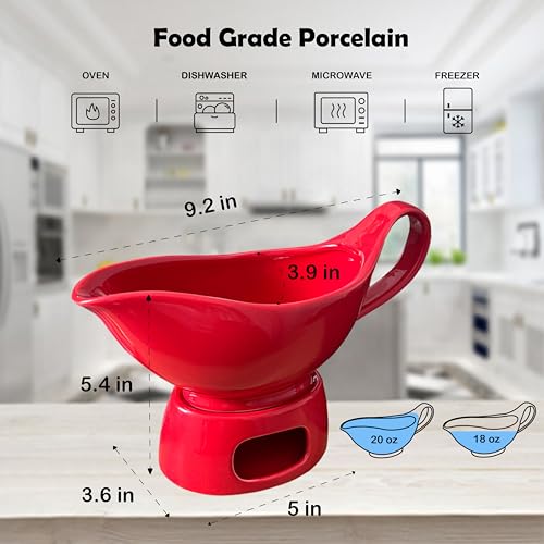 【 Easy to grip 】: This meat juice boat is made of durable red porcelain, with an ergonomic handle that is large enough to accommodate two to three fingers, bright colors, smooth surface, stain resistant, easy to clean, can be used alone with the meat juice boat, easy to reheat and eat, suitable for microwave ovens, dishwashers, refrigerators, etc.