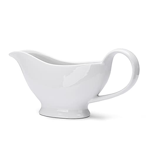 White Gravy Boat, 8oz Ceramic Gravy Jug, Small Sauce Jug with Smooth Handle, Porcelain Sauce Boat for Salad Dressing, Broth, Cream, Milk