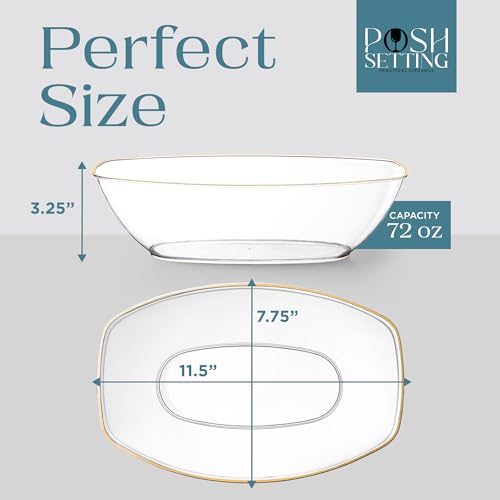 Posh Setting Clear Plastic Serving Bowls Disposable – Oval Bowls – Oval Candy Bowl – Plastic Snacks & Chip Bowls for Parties – Clear & Gold Party Serving Dishes, 4 pack
