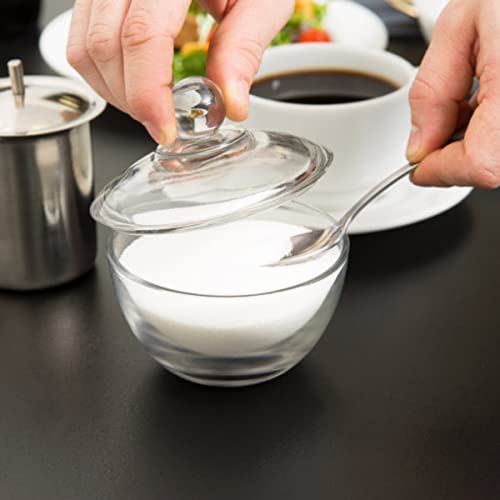 High-quality, crystal-clear glass sugar bowl has an 8 oz capacity and comes with an elegant lid.