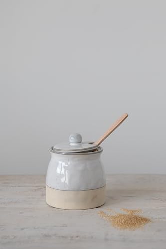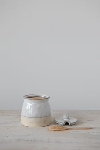 Creative Co-Op White Stoneware Sugar Pot with Lid