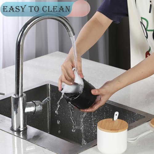 Multifunctional sugar bowl – This white/black sugar bowl has a wide mouth and a capacity of 12oz, is easy to store and suitable for any condiment such as sugar, salt, other treats for kids, nuts, tea leaves, etc. The sugar container is a good choice for you to make your daily storage become simple and clear. Detail size can be read from pic.