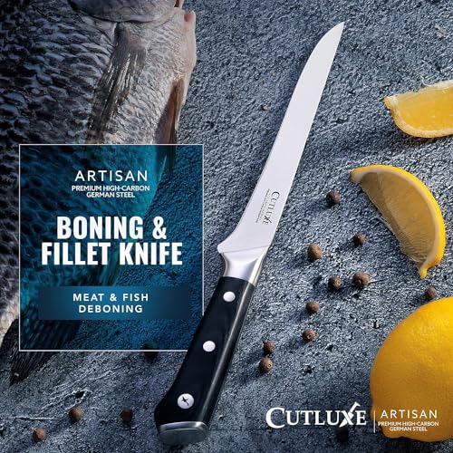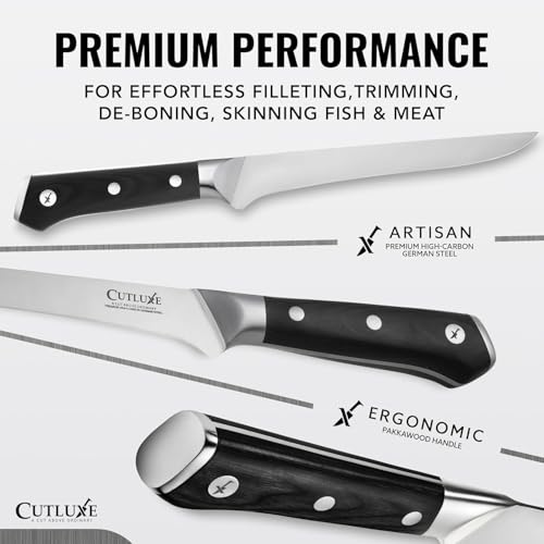 Cutluxe Boning & Fillet Knife – 6″ Deboning Knife, Perfect for Meat Trimming – Razor Sharp Blade from High Carbon German Steel – Full Tang & Ergonomic Handle Design – Artisan Series
