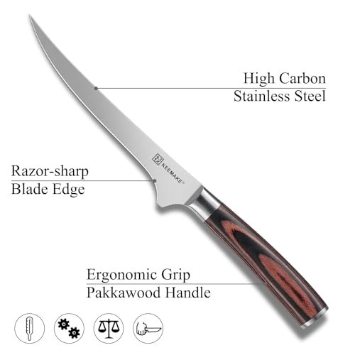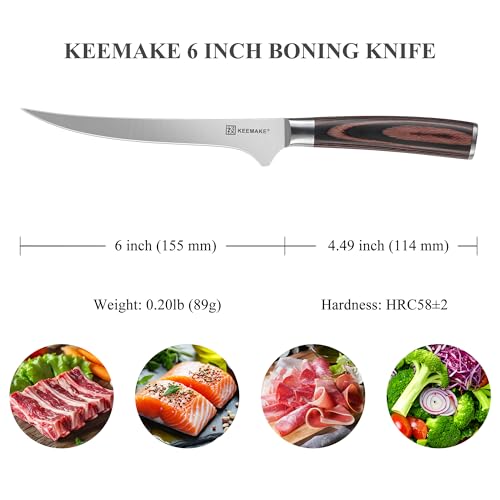 KEEMAKE Boning Knife 6 Inch, Razor-sharp Fillet Knife with High Carbon Stainless Steel Blade and Pakkawood Handle, Professional Kitchen Deboning Knives with Protective Sheath