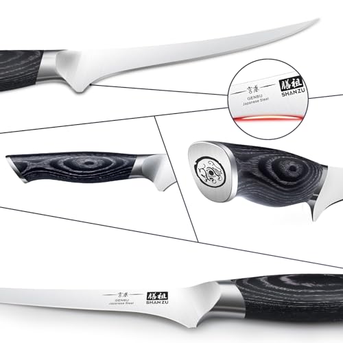 SHAN ZU 7 Inch Fillet Knife, Japanese Super Steel Boning Knife, Professional Ultra Sharp Fish knife with K133 Ergonomic Handle, Black Tortoise Genbu Series