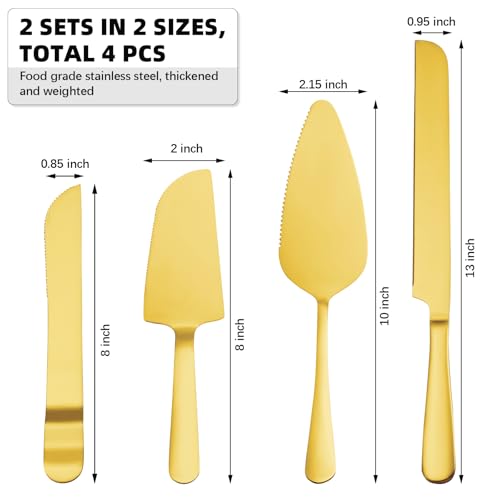 4 Pcs Gold Cake Cutting Set, Premium Cake Cutter & Pie Server Set for Wedding, Thickened Stainless Steel Cake Knife and Server with Rounded Edges, Pie Server Spatula Birthday Christmas Gift