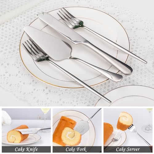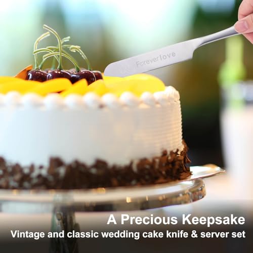 🍕【Thoughtful Design】 Elegantly engraved “Happily ” and “forever love” on the cake knives and spades, and “MR” and “MRS” engraved on the fork so you can use it without mixing it up, these perfect cake cutting set ,Let this cake knife service set commemorate this special day.
