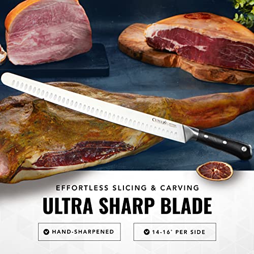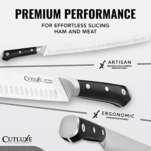 Cutluxe Extra-Long 14″ Slicing Carving Knife – Brisket Knife, Razor Sharp Meat and BBQ Knіfe – High Carbon German Steel – Full Tang & Ergonomic Handle Design – Artisan Series