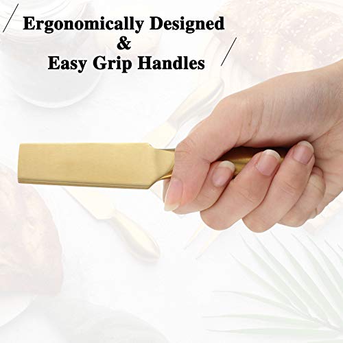 Patelai Stainless Steel Cheese Knives Set, Cheese Tools with Slicer and Cutters for Kitchen(Gold,4 Pieces)