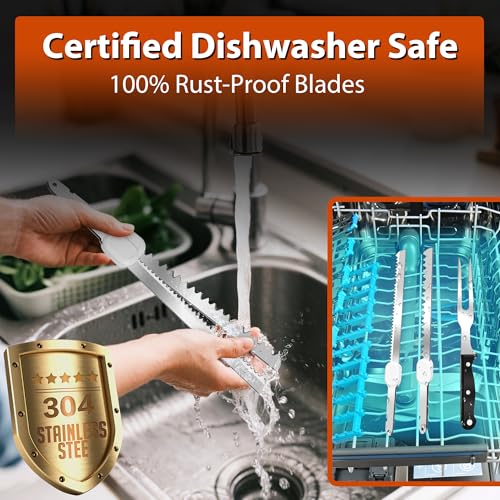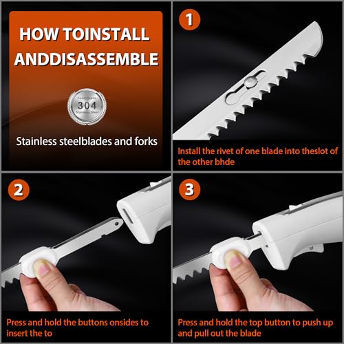 [SHARP AND DURABLE PROFESSIONAL CHOICE]The electric bread knife is made of military grade 420 stainless steel blades, combining both sharp edges and wear-resistant properties. It is a long-lasting sharp tool for home kitchen and outdoor barbecue.