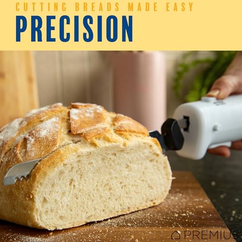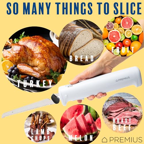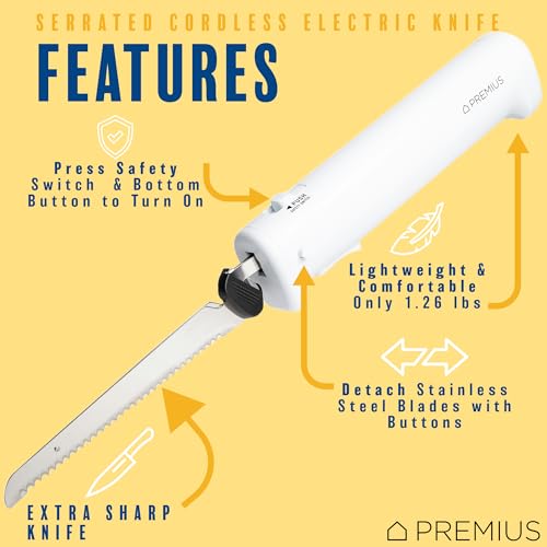 Professional Cordless Rechargeable Easy-Slice Electric Knife, Reciprocating Serrated Stainless-Steel Blades, Safety-Lock Trigger Release, Carving Meats, Turkey, Breads, Fruit, Crafting Foam, White