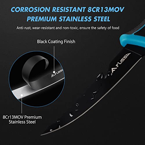 Durability & Razor Sharp – Blade is made of 8CR13MOV Premium stainless steel, only 1.8 mm thick makes it as sharp as a razor, black coating finish gives it anti-rust, wear-resistant and non-toxic, ensuring the safety of food