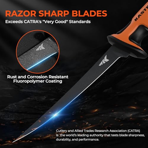 Superior Blade Craftsmanship: Expertly forged from vanadium stainless steel, the KastKing Ultimate Angler 7″ fillet knife offers outstanding sharpness and exceptional edge retention. It is rigorously tested and rated “Very Good” by CATRA, ensuring it can handle the most precise and challenging filleting tasks