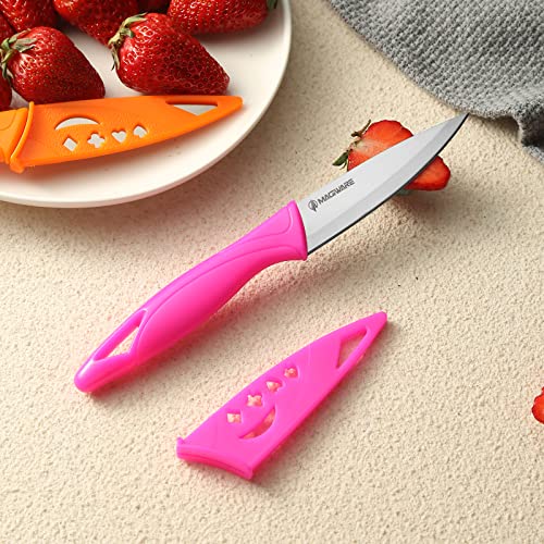 【Pairing Knife Set】: Complete Set includes 4 Paring knives and 4 knife sheath covers, 3.5inch straight blade with point is perfect for a wide range of kitchen small tasks, including peeling, trimming, and slicing fruits, vegetables, and meats.