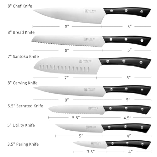 THE PERFECT GIFT: This kitchen knife set is an attractive and practical present for family and friends. LIFETIME WARRANTY! Any questions about the PAUDIN kitchen knives please contact us. We will respond within 24 hours.