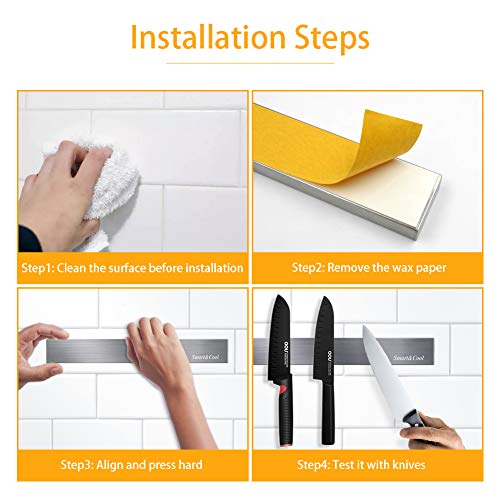 SMART&COOL Self-adhesive Magnetic Knife Holder, Magnetic Knife Strip for Wall Mounting, no Drilling (Stainless Steel-12 in)
