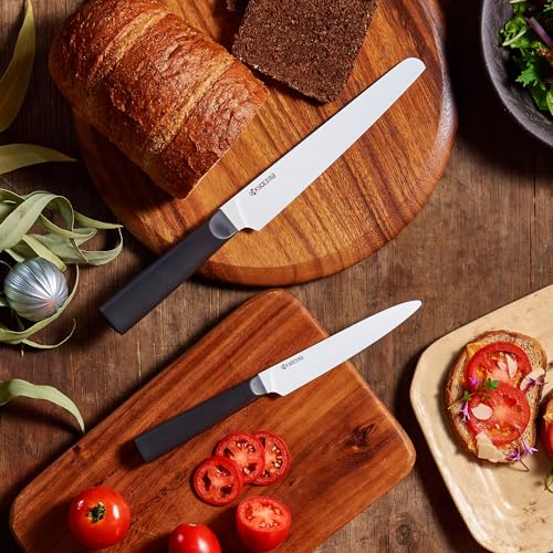 Kyocera INNOVATIONwhite 5″ Ceramic Tomato Knife – White Z212 Micro Serrated Blade with Non-Slip Black Handle