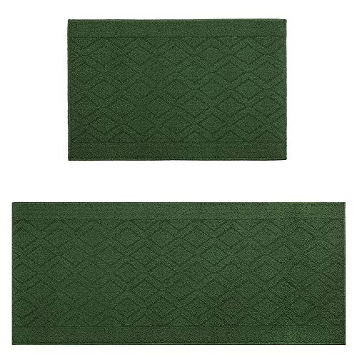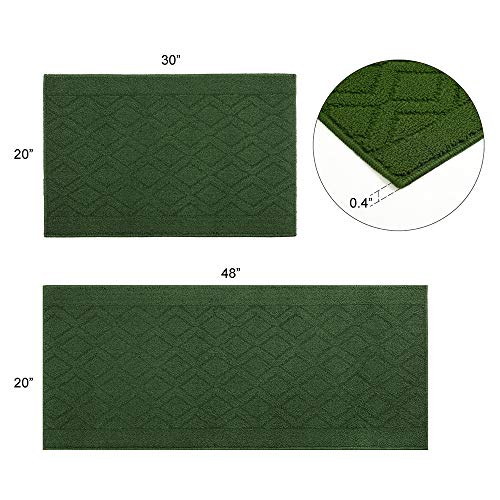 COSY HOMEER 48×20 Inch/30X20 Inch Kitchen Rug Mats Made of 100% Polypropylene 2 Pieces Soft Kitchen Mat Specialized in Anti Slippery and Machine Washable for Home Kitchen,Green
