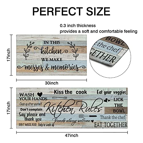 Farmhouse Kitchen Rug Sets of 2 Piece Non Slip Kitchen Rugs and Mats Washable Kitchen Mats for Kitchen Floor Mat Carpet Runner Rugs for Hallway Laundry Decor 17”x30“+17” X 47”