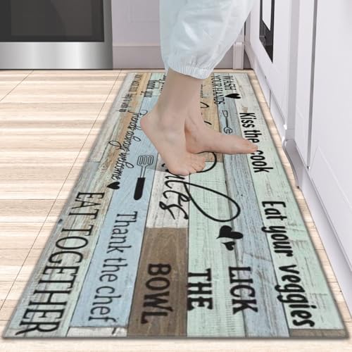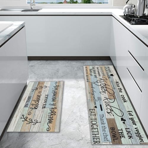 Non-slip Kitchen Rugs and Floor Mats : This set of 2 kitchen rule floor mats is extremely durable. The heavy duty non-slip rugs come with a rubber backing to keep the kitchen rug in place. Whether it is wooden or tile floor, wet or dry, you will never have to worry about non-slip issues when standing on it