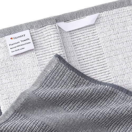 Homaxy Premium Kitchen Towels(18”x 28”, 6 Pack), Large Cotton Kitchen Hand Towels, Flat and Terry Dish Towels, 380 GSM Highly Absorbent Tea Towel Set with Hanging Loop, Grey