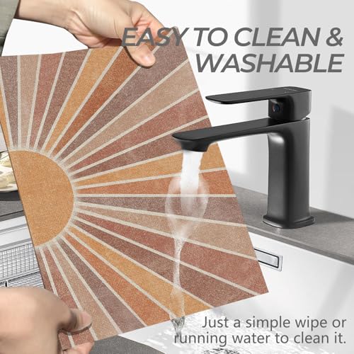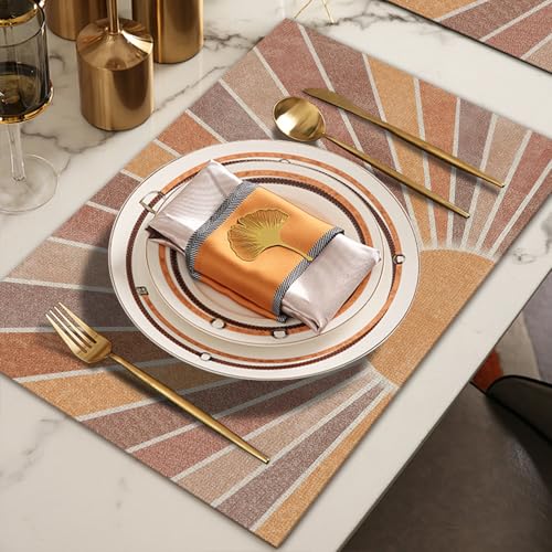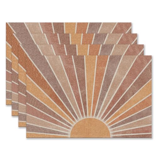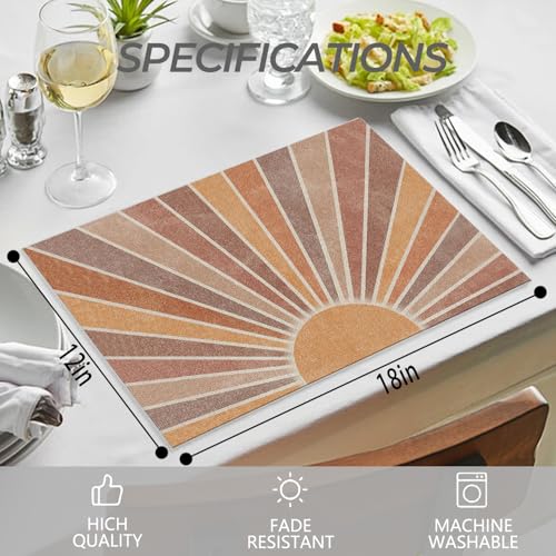 Abstract Retro Boho Sun Sunshine Placemats Set of 4 12×18 Inch, Mid Century Modern Boho Table Mats Washable Placemat for Home Party Kitchen Dining Room Decoration