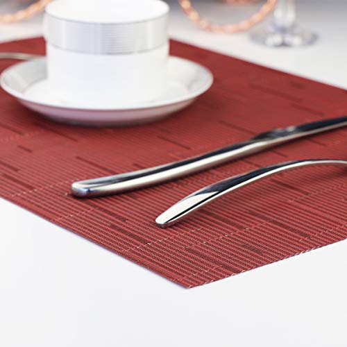 PIGCHCY Placemats,Washable Durable Vinyl Woven Table Mats,Elegant Heat Resistant Placemats for Dining Table Set of 4 (18 x 12 inches,Burgundy Red)