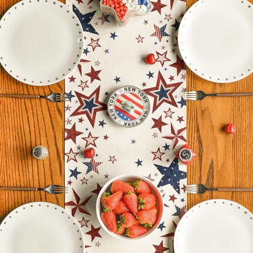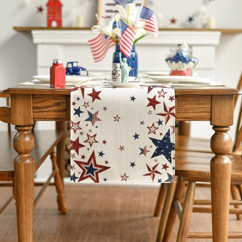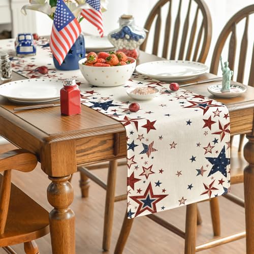 Artoid Mode Old Style Stars American Flag 4th of July Table Runner, Memorial Day Kitchen Dining Table Decoration for Home Party Decor 13×72 Inch
