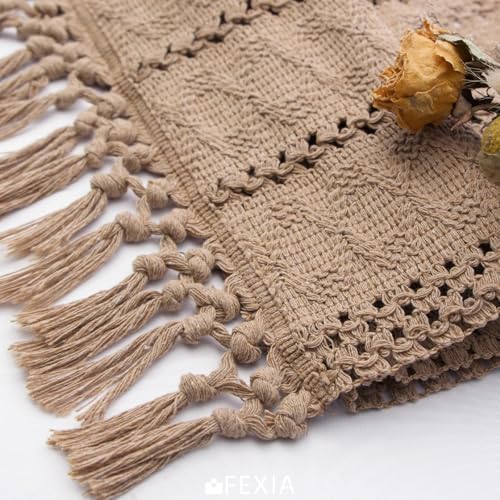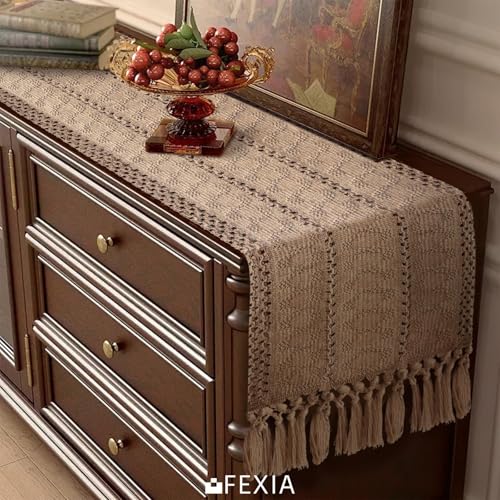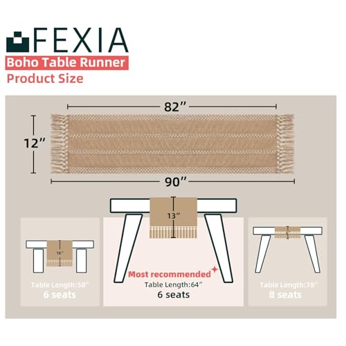 Fexia Brown Burlap Boho Coffee Table Runner with Tassels – 90 Inches Long for Farmhouse Home Decor Modern Fall Table Runner for Bohemian Dining Bedroom Decor Rustic Style (12×90 Inches)