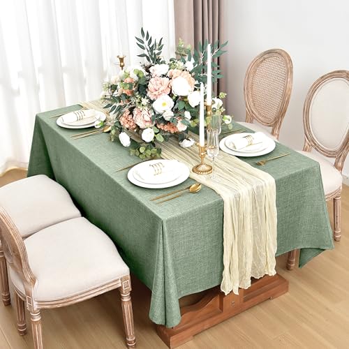 Fitable Linen Tablecloths for Rectangle Tables: Water & Stain Resistant Farmhouse Table Cloth, Washable Burlap Textured Table Covers for Kitchen Dining Party(2 Pack, 52×70 Inch, Sage Green)