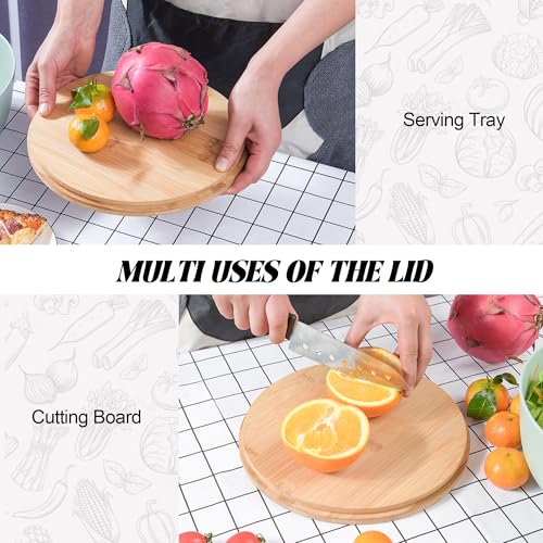 【MULTIPLE USEAGE DESIGN OF LID】The unique slot design on the cover would bring you convenient &helpful store. No more trying to figure out where to place tongs. Double sides of nature organic bamboo wood lid can be used as a CUTTING BOARD or an elegant serving board to display bread,cake,fruit and more.